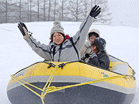 スリル満点のスノーラフティングは、営業時間内であれば、予約をしなくても気軽に楽しめる。