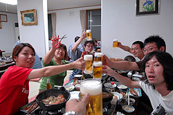 また、メンバーは昼間屈斜路湖で遊んだときの日焼けで真っ赤。